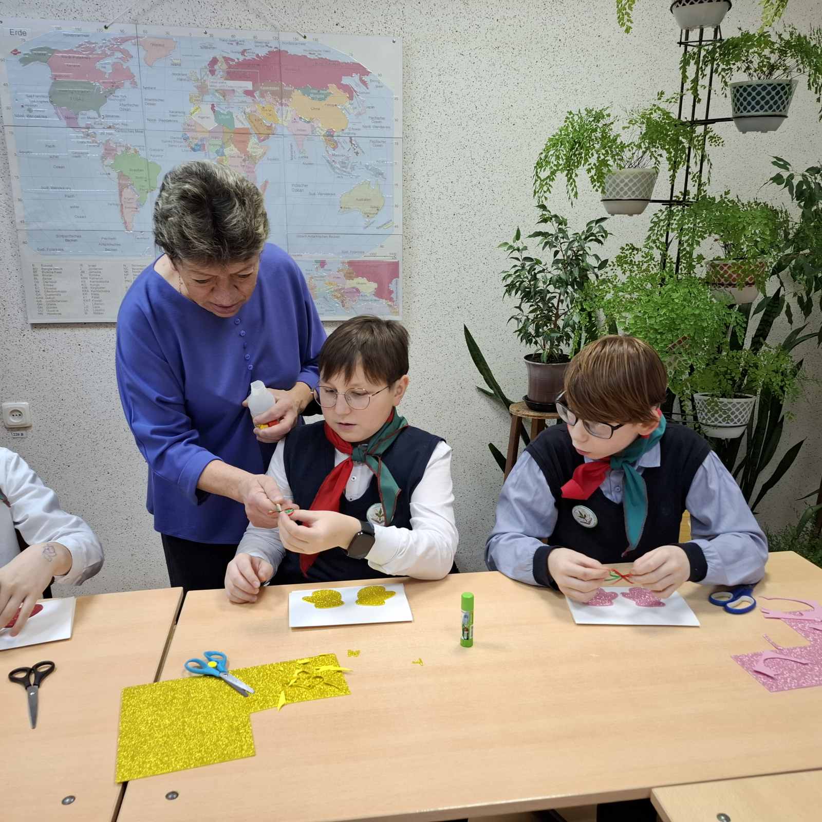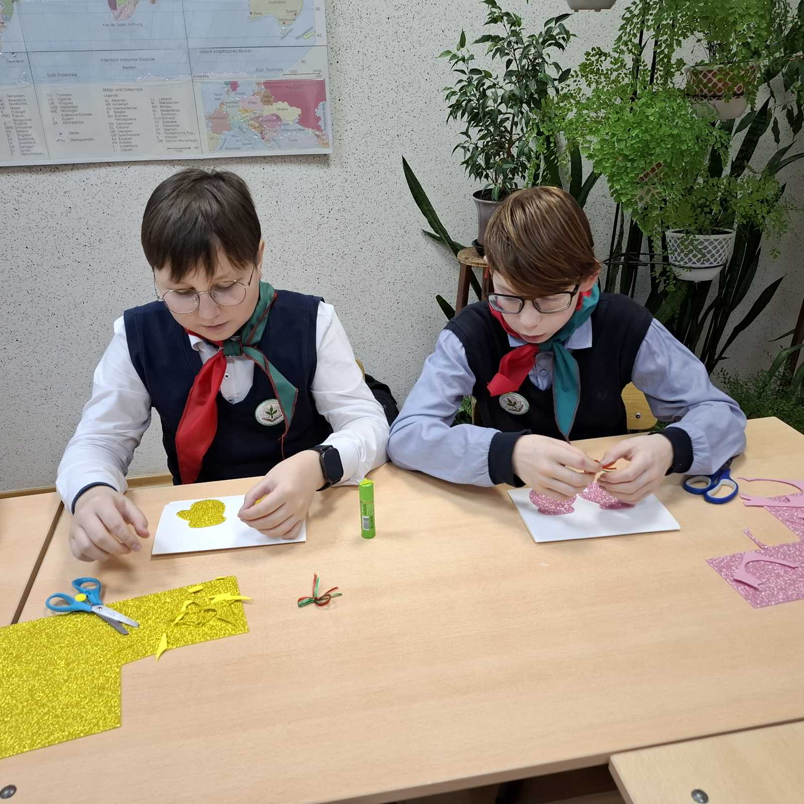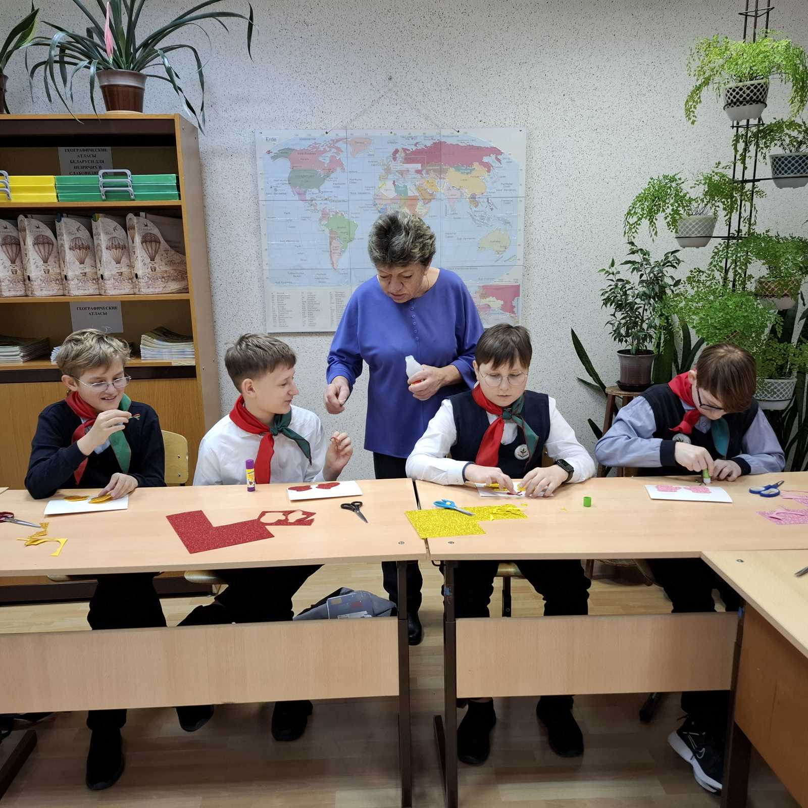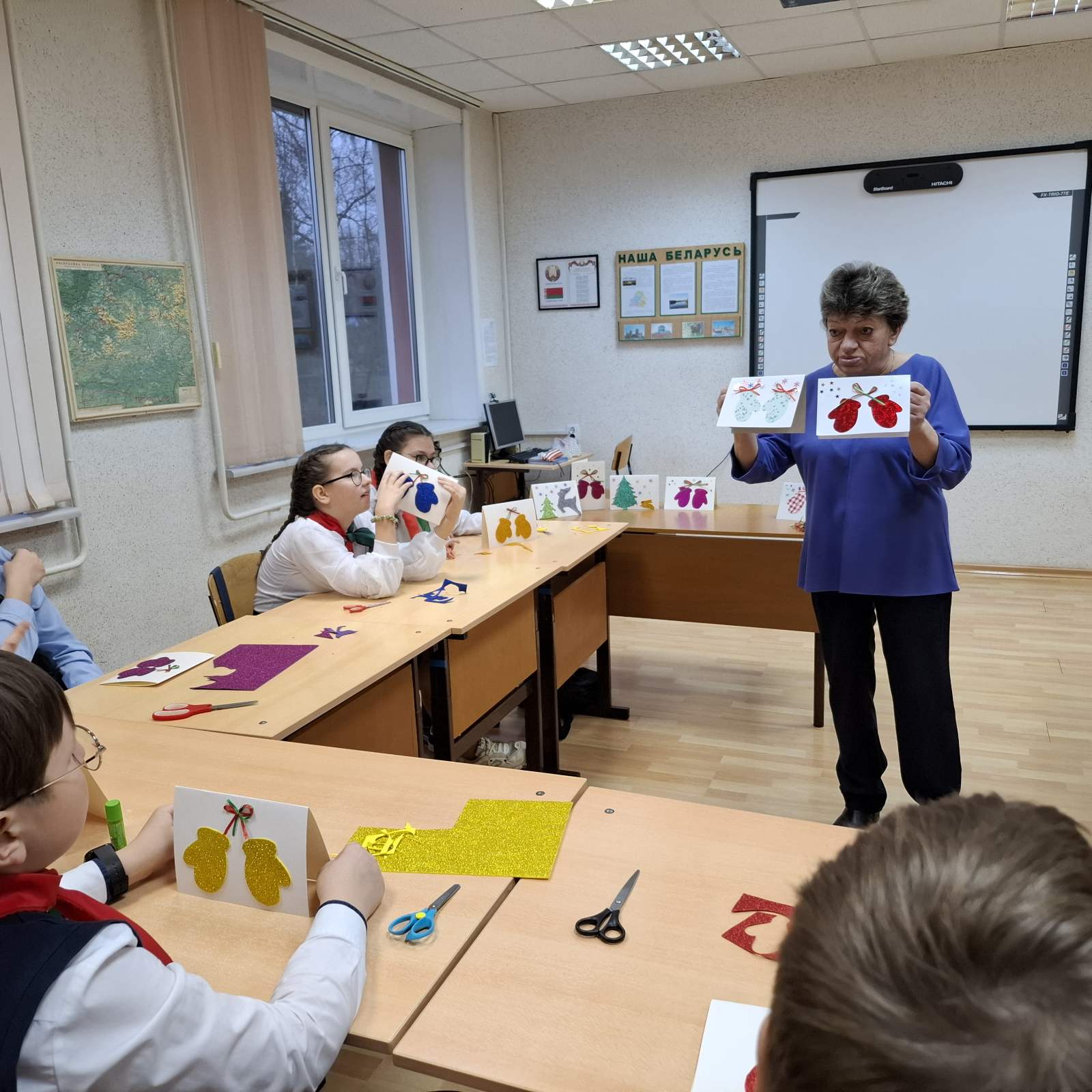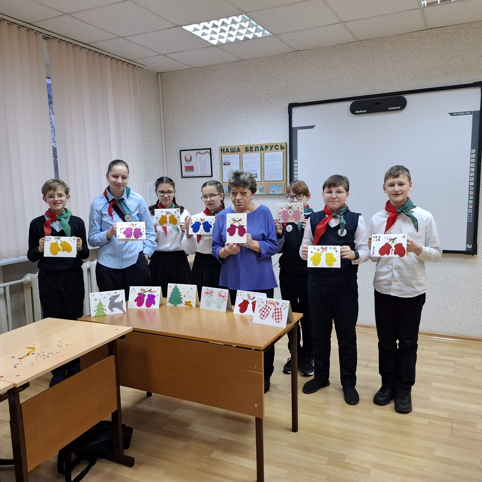Ребята собрались после уроков, дружно обсудили идеи и приступили к творчеству. Нам повезло — создать по-настоящему волшебные открытки помогла педагог дополнительного образования ГУО «Центр детского творчества «Прамень» г. Шклова» Галина Николаевна Подстенная. С её помощью каждая открытка стала уникальной и наполнилась теплом! К своим творениям мы добавили самые искренние пожелания.