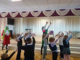 В рамках месячника «Человек с белой тростью» для наших учащихся сотрудники отдела по обслуживанию детского читателя ГУК «Централизованная библиотечная сеть Шкловского района» показали интересное театрализованное представление «Как царь Горох себе книгу искал». Они пригласили ребят в сказочный мир,в котором царствует госпожа Осень и царь Горох. С большим удовольствием ребята вместе с героями танцевали, играли, отгадывали загадки.