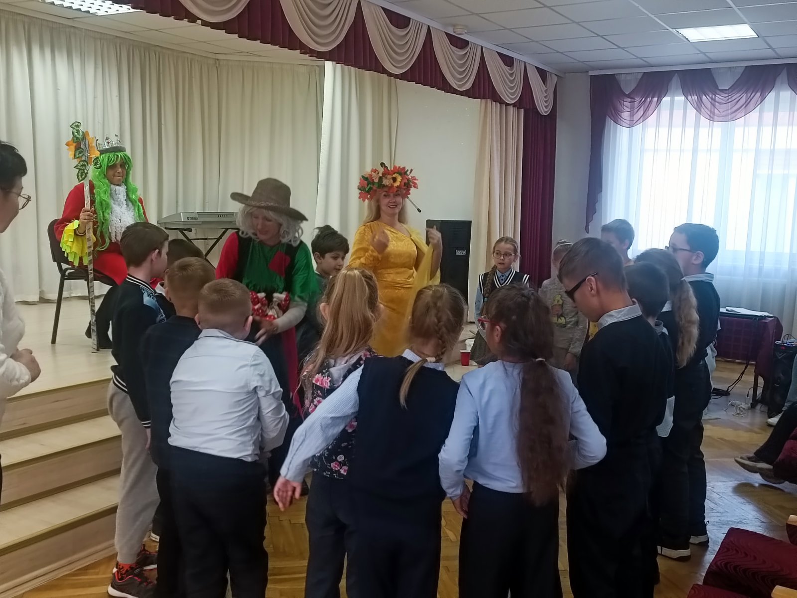 В рамках месячника «Человек с белой тростью» для наших учащихся сотрудники отдела по обслуживанию детского читателя ГУК «Централизованная библиотечная сеть Шкловского района» показали интересное театрализованное представление «Как царь Горох себе книгу искал». Они пригласили ребят в сказочный мир,в котором царствует госпожа Осень и царь Горох. С большим удовольствием ребята вместе с героями танцевали, играли, отгадывали загадки.