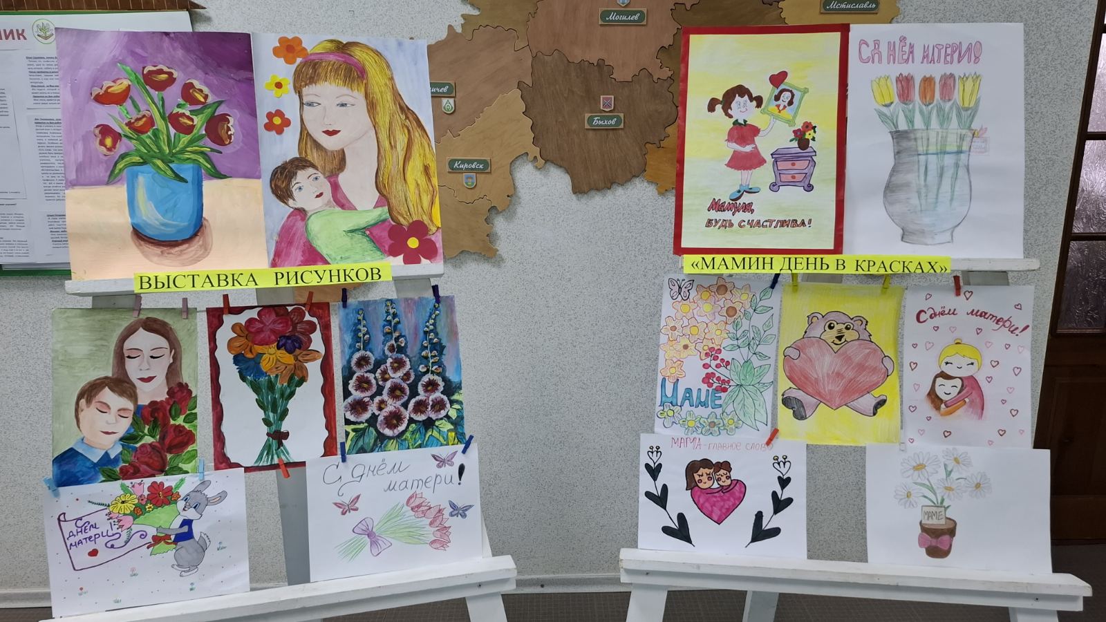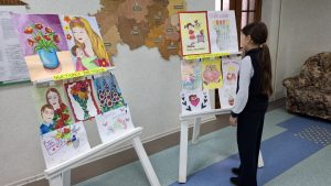 В нашей школе проходит выставка детских рисунков, посвящённая Дню матери.